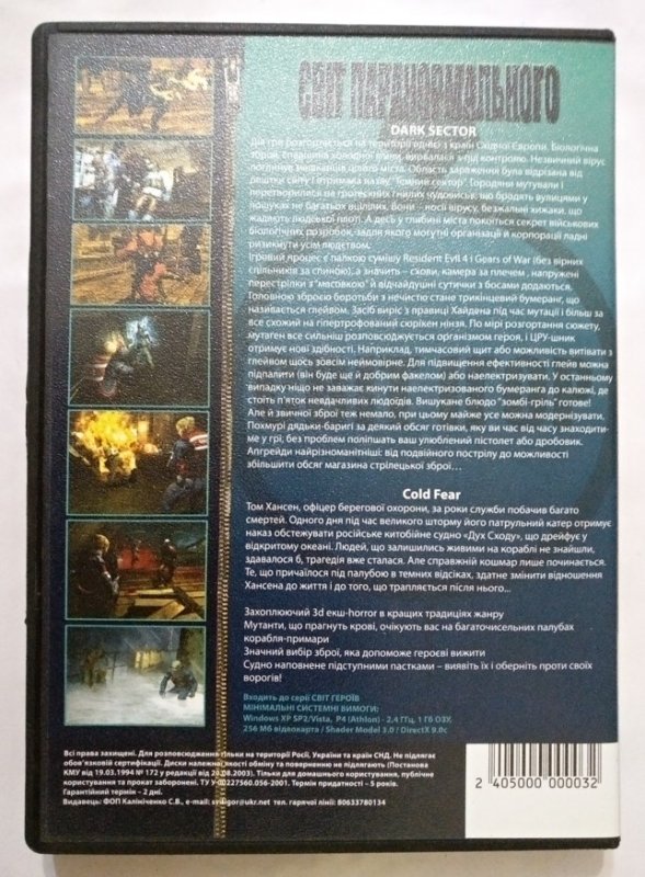 Игровой диск Dark Sector, Cold Fear. Свит паранормального купить в Киеве.