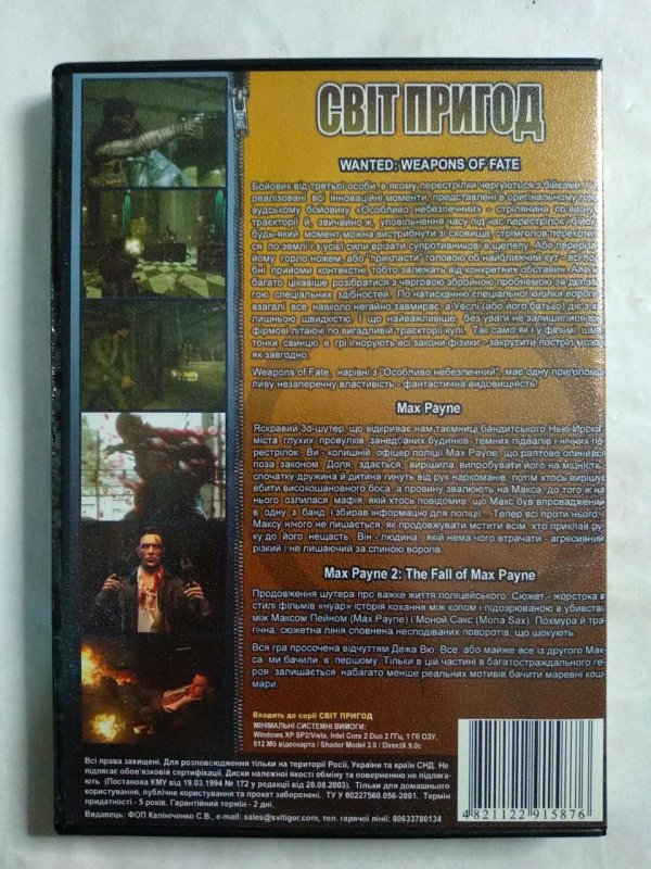Игровой диск Wanted Weapons of fate, Max Payne, Max Payne 2. Свит пригод купить в Киеве.