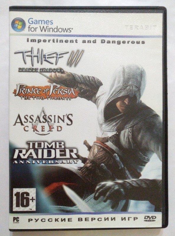Продам диск с игрой Thief 3, Prince Persia, Assassins, Tomb Raider. Impertinent and Dangerous. PCDVD для ПК. Диск рабочий, могут присутствовать царапины.