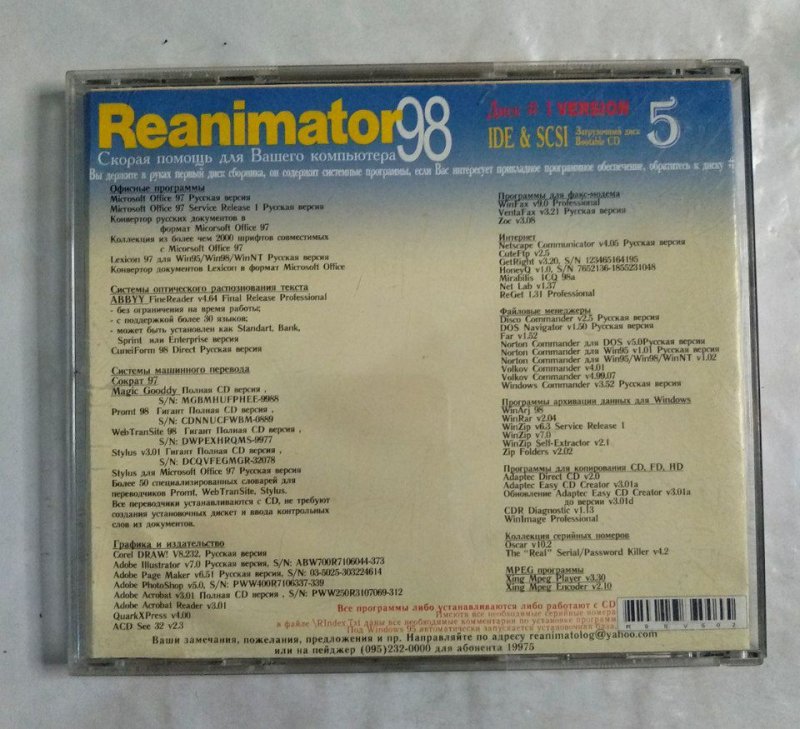 Продам диск Reanimator 98 (Version 5) для ПК.