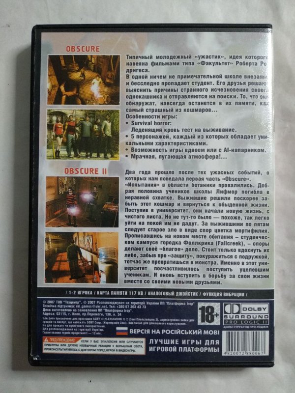 Игровой диск ObsCure, ObsCure 2 для PS2 купить в Киеве.